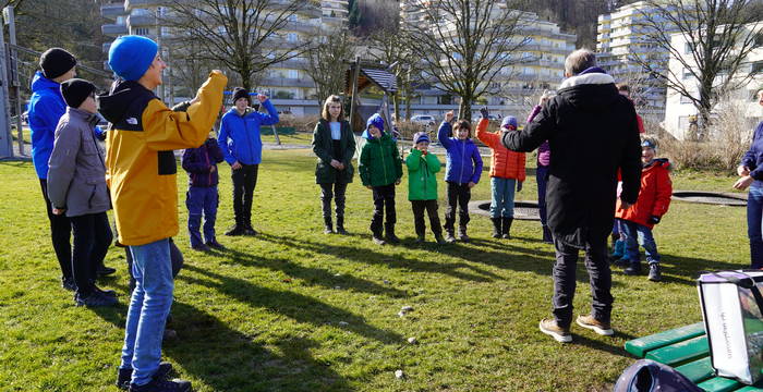 Bei kaltem Winterwetter aber strahlendem Sonnenschein besuchten wir den Bireggwald. Der Hasel und der Tierlibaum blühten bereits und ein Distelfink hat uns mit seinem Gesang auf Hirtenhof zusätzlich begrüsst. Zuerst erkletterten wir den imposanten Erratiker und staunten darüber, dass vor tausenden von Jahren der Gletscher ein solch grossen Stein transportieren konnte. Ein toller und natürlicher Spielplatz.Im Bireggwald trafen wir auf Spuren vom Eichhörnchen, Reh, Waldmaus und vom Buchdrucker; die Naturdetektive staunten, was sich alles im Wald entdecken lässt. Einige hörten sogar das Hämmern vom Specht; jedenfalls haben wir seine Wohnungen in den stehenden Totholzbäumen gut entdecken können. Rasante Waldspiele mit viel Power lockerten das Programm auf. Glücklich, unfallfrei und zufrieden fuhren wir mit dem Bus wieder zurück in die Stadt.