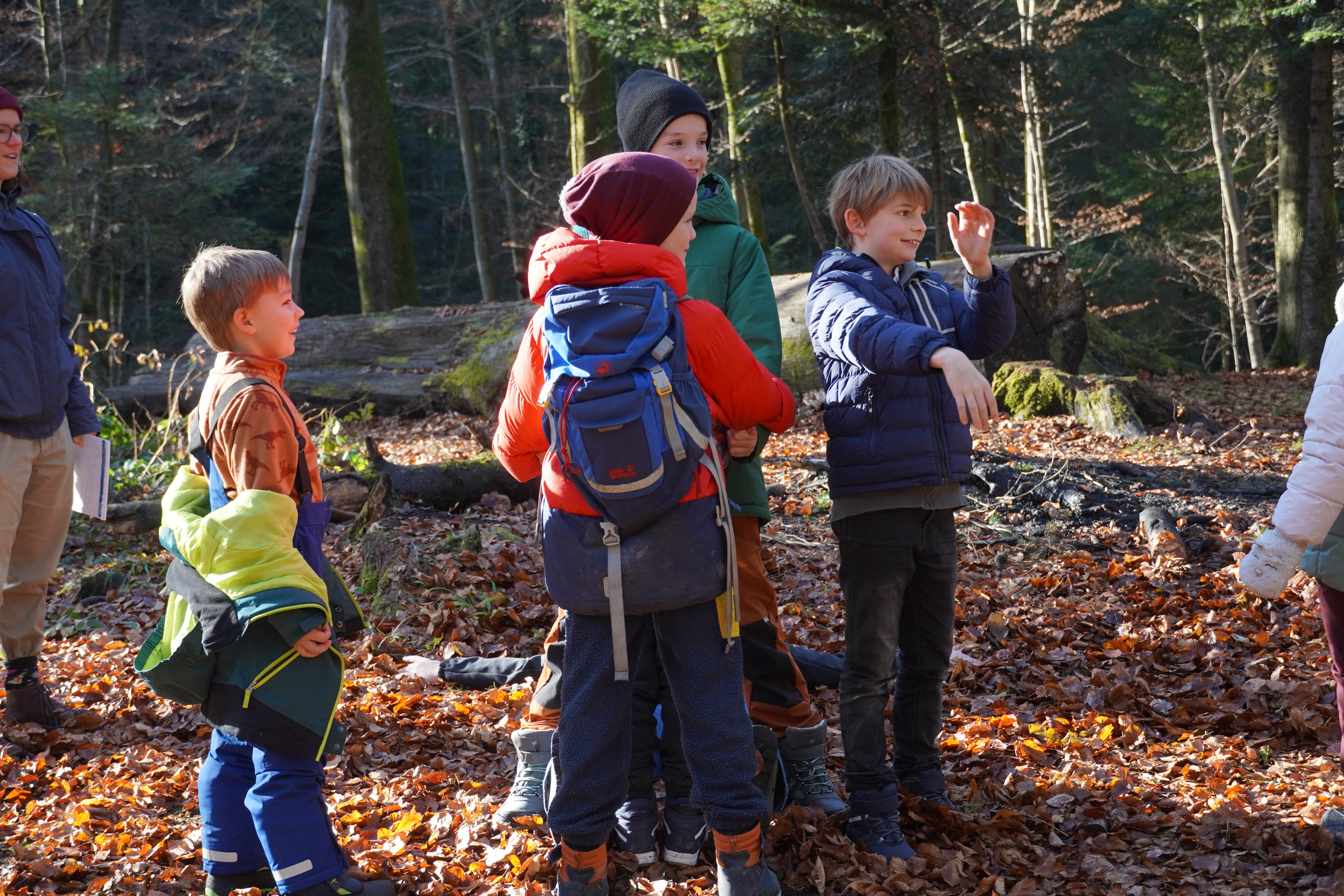 Till erzählt vom vergangenen Anlass: Mit der Gütschbahn ging es in den Gütschwald, wo wir uns ein gemütliches Plätzchen gesucht haben. Flavia erzählte uns Wissenswertes über die Bäume und den Wald in unserer Umgebung. Mit spielerischem Lernen erfuhren wir unter anderem etwas über die spannende Vielfalt im Totholz und den Aufbau eines Baumes. Nach dem anstrengenden Springen des grössten Laubhaufens, den der Wald je gesehen hat, liefen wir nach stärkendem Zvieri zurück. Dabei machten wir gleich zwei seltene Entdeckungen; Nicht nur sahen wir den blau schillernden Eisvogel, sondern konnten sogar den scheuen Iltis aus nächster Nähe beobachten.